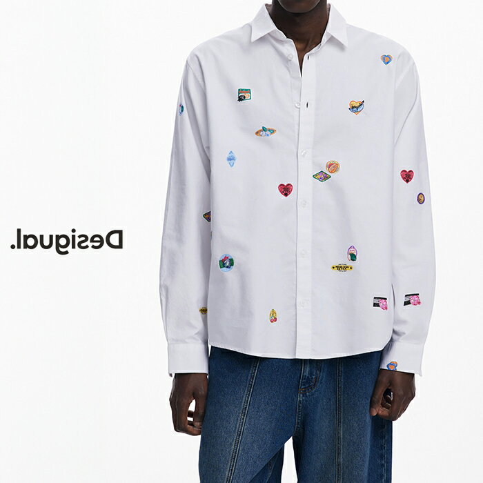 Desigual デシグアル メンズ カジュアルシャツ 刺繍 プリント おしゃれ カジュアル インポート 30代 40代 50代 S M L ホワイト