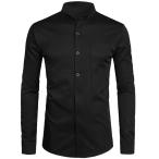 【並行輸入品】メンズドレスシャツバンドマンダリンカラーシャツ男性長袖カジュアルボタンダウンシャツポケット付き Black US Size XXL