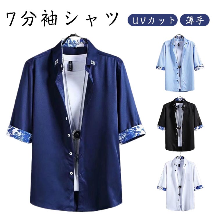 カジュアルシャツ かっこいい 薄手 UVカット 夏服 メンズ メンズ シンプル 涼しいシャツ 大きいサイズ タンアップ シャツ 柔らかい 7分袖シャツ