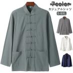 リネン風シャツ メンズ カジュアルシャツ 綿麻シャツ チャイナシャツ スタンドカラー 長袖 カンフーシャツ バンドカラー チャイナボダン カジュアルコ