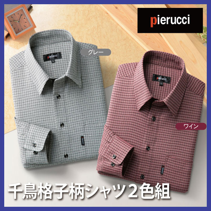 \ページ限定・マジッククロス付/【送料無料】【ピエルッチ 千鳥格子柄シャツ2色組GV-057】メンズカジュアルシャツ長袖