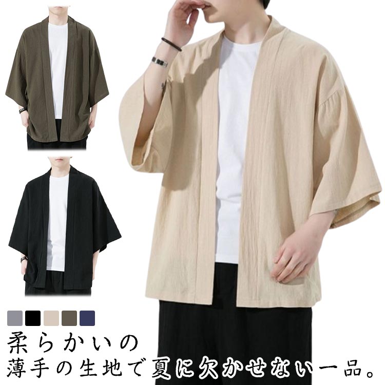 羽織 七分袖 カーディガン 無地 和風 和式 通気性 カジュアル メンズ シャツ 軽量 春 夏 メンズ 秋 エアコン対策 ゆったり 大きいサイズ メン