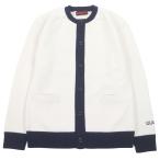 未使用品□GUCCI グッチ 25SS 814520 コットン100% ロゴ入り インターシャ ニットカーディガン ホワイト ネイビー XS 正規品 メンズ