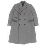 極美品□HERMES エルメス スーパー100sウール 一部ラムレザー使い ダブルブレスト チェスターコート グレー 52 イタリア製 正規品 メンズ