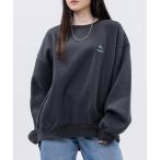 トレーナー スウェット 「Alfred Alex」ヴィンテージ加工ピグメント ワンポイント刺繍 オーバーサイズスタンドネックスウェット