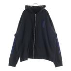 クロムハーツ Vertical Logo Zip Up Hoodie ヴァーティカル ロゴプリント 裏地サーマル ダガージップアップ スウェット パーカー ブラック