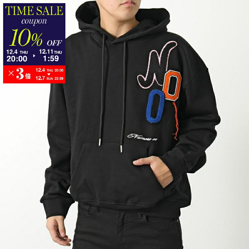 【10%OFFクーポン対象・12/4-20時~】NUMERO 00 ヌメロ フーディー HOODIE VARSITY 22127 メンズ スウェットシャツ バーシティ コットン ロゴ ワッペン プルオーバー 裏起毛 セットアップ可能 BLACK【cp_ten】