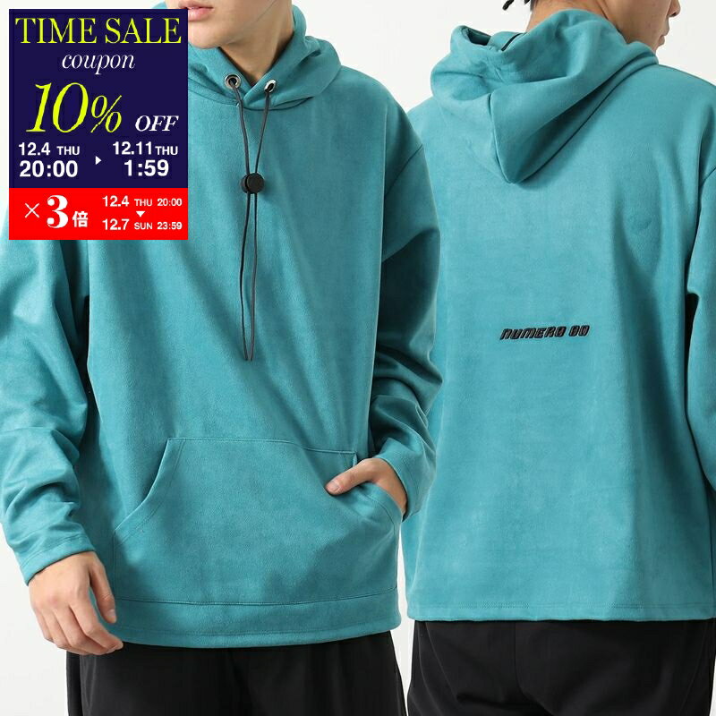 【10%OFFクーポン対象・12/4-20時~】NUMERO 00 ヌメロ フーディー HOODIE COULISSE 22112 メンズ スウェットシャツ 長袖 ロゴ 刺繍 スウェードライク LIGHT-BLUE【cp_ten】