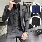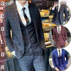 メンズ スーリピーススーツ 三点セット チェック柄 ビジネススーツ スーツ セットアップ スリム きれいめ 忘年会 結婚式