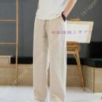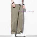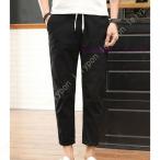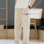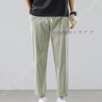 パンツ メンズ ズボン ロング ワイドパンツ 9分丈 麻パンツ テーパードパンツ アンクルパンツ ズボン 夏服 ボトムス リネン 無地 九分丈 調整紐 袴パンツ