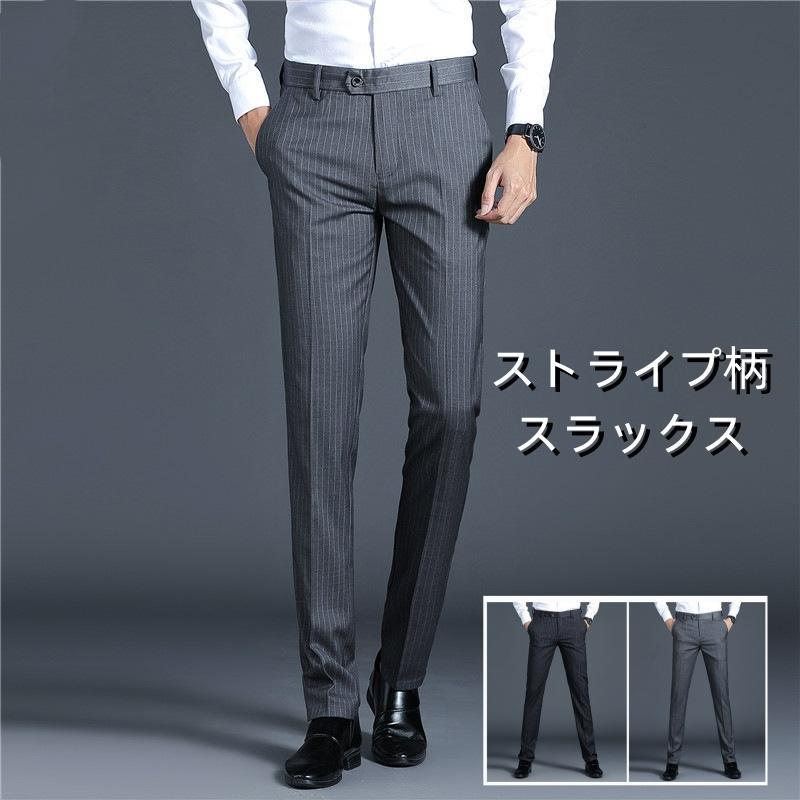 【期間限定10%OFF】ストライプ柄 スラックス メンズ ビジネススラックス スリム ノータック メンズ ズボン ウォッシャブル スーツパンツ 細身 洗える 春秋