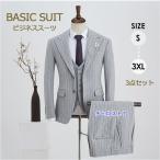 スリーピース ベスト付け スーツ メンズ ビジネススーツ セットアップ ストライブ柄 紳士服 結婚式 カジュアルスーツ