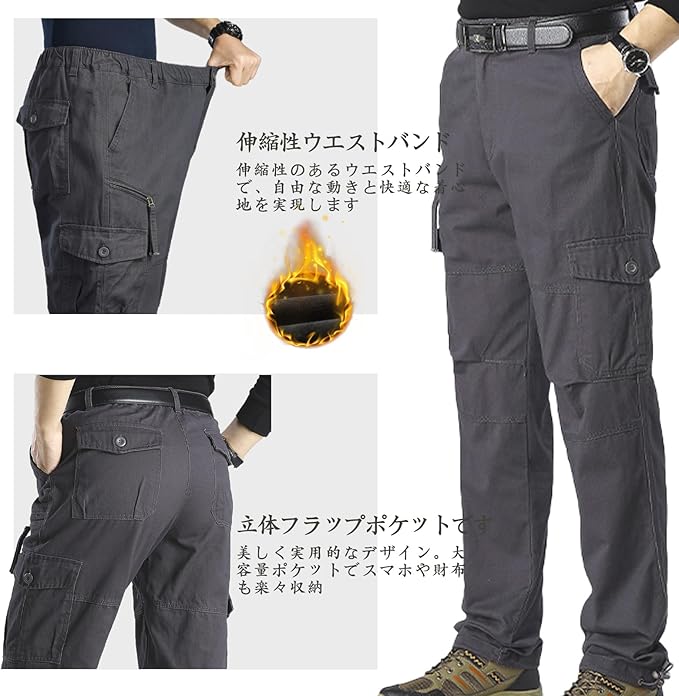 カーゴパンツ メンズ 冬 裏起毛 7つポケット 作業着 ズボン M-5XL 純綿 メンズ ズボン 大きいサイズ 100% 綿