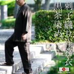 作務衣 日本製 メンズ 父の日 男性用 武州黒茶染 刺子織りオーダー作務衣(LL-3L) スタイリッシュタイプ 黒茶・ダークブラウン コットン100%