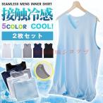 夏 タンクトップ メンズ 接触冷感 汗取り 2枚セット インナー シームレス ノースリーブ Vネック インナーシャツ 肌着 下着