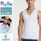 タンクトップ メンズ ノースリーブ Tシャツ 接触冷感 吸汗速乾 Vネック カットソー アンダーウェア 無地 通気性 肌着 極薄 シンプル スポーツ