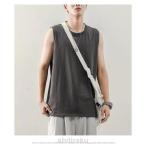 タンクトップ メンズ ノースリーブ Tシャツ ビッグシルエット スウェット インナー プリント 薄手 肌着 ゆったり クルーネック おしゃれ スポーツ