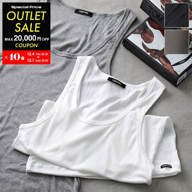 TOM FORD トムフォード アンダーウェア T4D10 121 メンズ タンクトップ ノースリーブ ロゴタグ Uネック リブ ストレッチ カラー4色【po_jyuuu】【outlet】