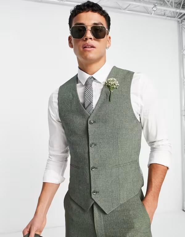 【送料無料】 エイソス メンズ タンクトップ トップス ASOS DESIGN wedding super skinny suit vest in pine green crosshatch DARK GREEEN