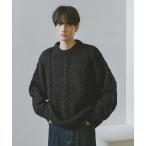 【メンズニット/チクチクしない/オーバーサイズ】ニット セーター メンズニット メンズセーター 春服 秋服 冬服 服 トップス カシミヤタッチニット 厚手 ボリューム袖 クルーネックニット 長袖 ケーブル編み 大きいサイズ