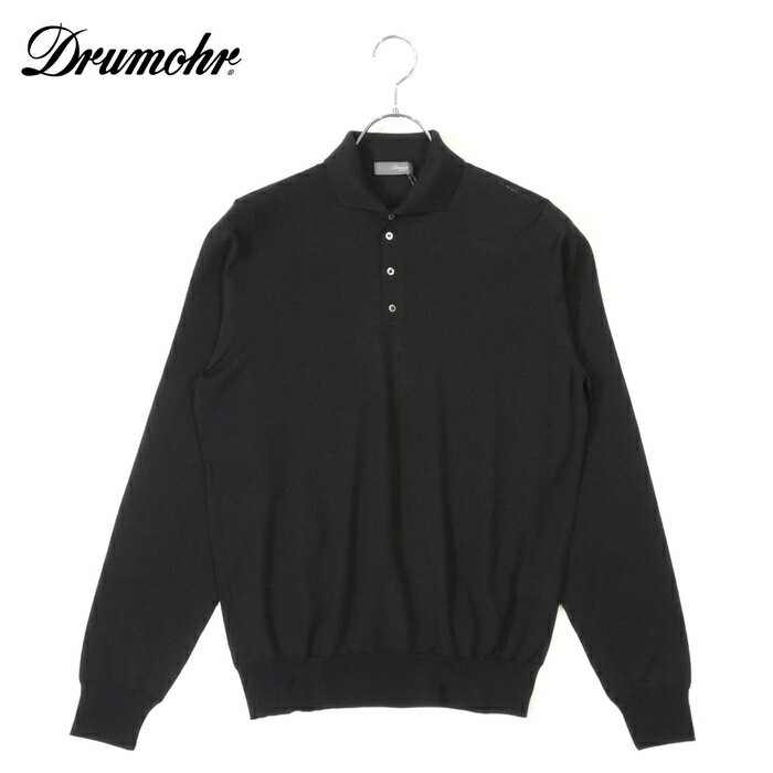 【40%OFF・新品・46~50】Drumohr MODERN(ドルモア)スーパーファインメリノウール 30GGハイゲージニットポロシャツ ブラック D0D145-690