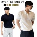サマーニット メンズ ニット スキッパーネック ニットポロ サマーニット ポロニット トップス 無地 リゾート 父の日 プレ