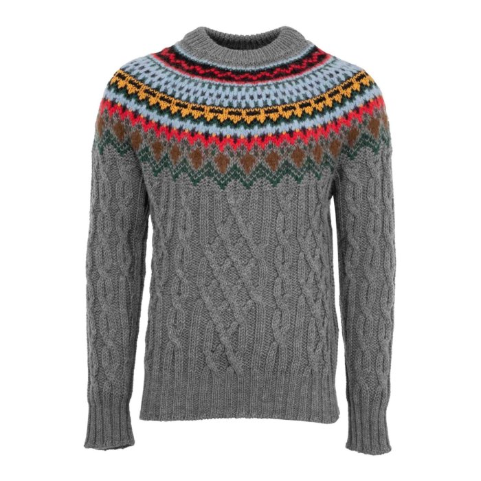 Drumohr / ドルモア カシミヤローゲージケーブル編みクルーネックニット(D3K103TR) (エクリュ)
