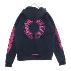CHROME HEARTS クロムハーツ SWTSHRT HD ZIP バックホースシュー 袖フローラルプリント ジップパーカー ブラック/ピンク