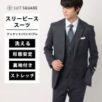 【スーツスクエア】メンズ スーツ スリーピース ベスト付き 3ピース フォーマル兼用 ウォッシャブル 2つボタン シャークスキン CH25 ブルー系