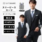 【スーツスクエア】メンズ スーツ スリーピース フォーマル兼用 ウォッシャブル 2つボタン オーバーチェック CH25 ネイビー系