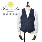 ジャンネット GIANNETTO シングルジレ メンズ ベスト GILET シアサッカー生地 ネイビー 紺 軽量 総裏地 同素材チーフ付属 イタリア製 国内正規品