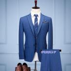 スリーピース ベスト付け スーツ メンズ ビジネススーツ セットアップ ストライブ柄 紳士服 結婚式 カジュアルスーツ