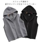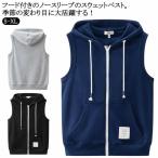 ポケット付き フード付き ベスト メンズ パーカーベスト スウェットベスト 前開きベスト ジップアップ ノースリーブ レイヤード ジレ トップス ゆっ
