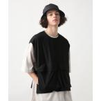 tシャツ 接触冷感 オーバーサイズ 鹿の子杢 フェイクベスト レイヤード 半袖Tシャツ メンズ レディース