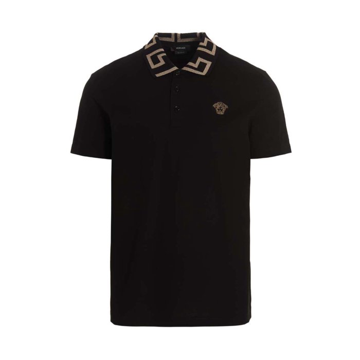 VERSACE ヴェルサーチェ メンズ ポロシャツ A874021A061991B000 'Greca' polo shirt Black XL L M S 2XL XS 3XL 4XL 5XL 6XL 【送料無料・関税込】