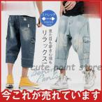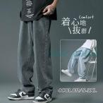 デニムパンツ メンズ ボトムス ワイド パンツ ゆったり 薄手 ロング丈 無地 着痩せ カジュアル おしゃれ かっこいい B系 紳士