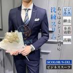ビジネススーツ セットアップ メンズ オールシーズンスーツ スーリピーススーツ 3点セット 細身 カジュアル 紳士服 上品 ストライプ柄 通勤 洗える