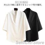 着物風 シャツ 半袖 メンズ 半襦袢 シャツ型 衿付き 大きいサイズ 夏服 衿付き シャツ Vネック カジュアルシャツ 和装 男性 襦袢