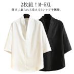 黒 和装 五分袖 Vネック 着物 代替品 作務衣 半袖 半襦袢 肌着 襦袢 半襦袢 2枚組 メンズ 下着 インナー Tシャツ 夏用 冬用 肌襦袢 合衿