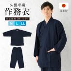 作務衣 メンズ 日本製 久留米織 光延織物 綿 男性 通年 洗える カジュアル 部屋着 普段着 和装 ルームウェア インディゴ 紺 M L LL 送料無料