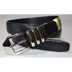 クロコ型押し 3連通し本牛革 メンズロングベルト BK サイズ調整可能 〜ウエスト110cmまで対応