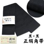 18000【 メンズ 帯 】 正絹 角帯 博多織 角帯 献上柄 黒 × 黒 独鈷柄【 絹100% 】 日本製 居合用 井上絹織 本場筑前博多織 帯 男 袋織 紳士 着物 浴衣 ゆかた 男性 男物 通年 献上柄 本袋 絹 シルク リバーシブル 単色 【メール便1点まで可能】sns-obi-h-26