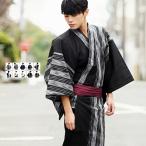 浴衣 メンズ セット 帯付き 2点セット ゆかた 和服 紳士 男性 涼しい 清涼 M L 無地 作り帯 簡単 白 黒 紺 ホワイト ブラック ネイビー お祭り 花火大会