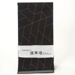 角帯 正絹 -27B- 双流 よろけ縞/独鈷/七宝 黒/赤 博多織 絹100%