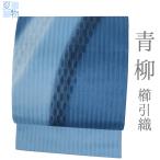 袋帯 青柳 櫛引織 夏帯 青 立涌 正絹 仕立て上がり 大きいサイズ 長尺 カジュアル 着物 No.i6-2255