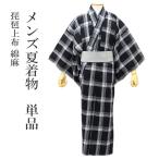 着物 夏着物 綿麻 琵琶上布 Lサイズ 洗える 黒 格子 普段着 メンズ 着物 夏 男 近江ちぢみ