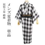 着物 夏着物 綿麻 琵琶上布 Lサイズ 洗える 白 グレー 格子 普段着 メンズ 着物 夏 男 近江ちぢみ