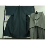 平和屋本店■極上 男性 お召 アンサンブル 長羽織・長襦袢(袷) 3点セット キングサイズ 着物・煤色地 羽織・潤色地 逸品 DZAA5374kh5