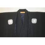 弐11081 本絹羽二重 男黒紋付着物羽織 裄67丈136К丸に違い鷹の羽 新品未着用
