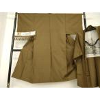 平和屋着物●男性 石川県指定無形文化財 牛首紬 白山工房 手織り アンサンブル 色無地 涅色 証紙付き 正絹 逸品 AABG5838ck